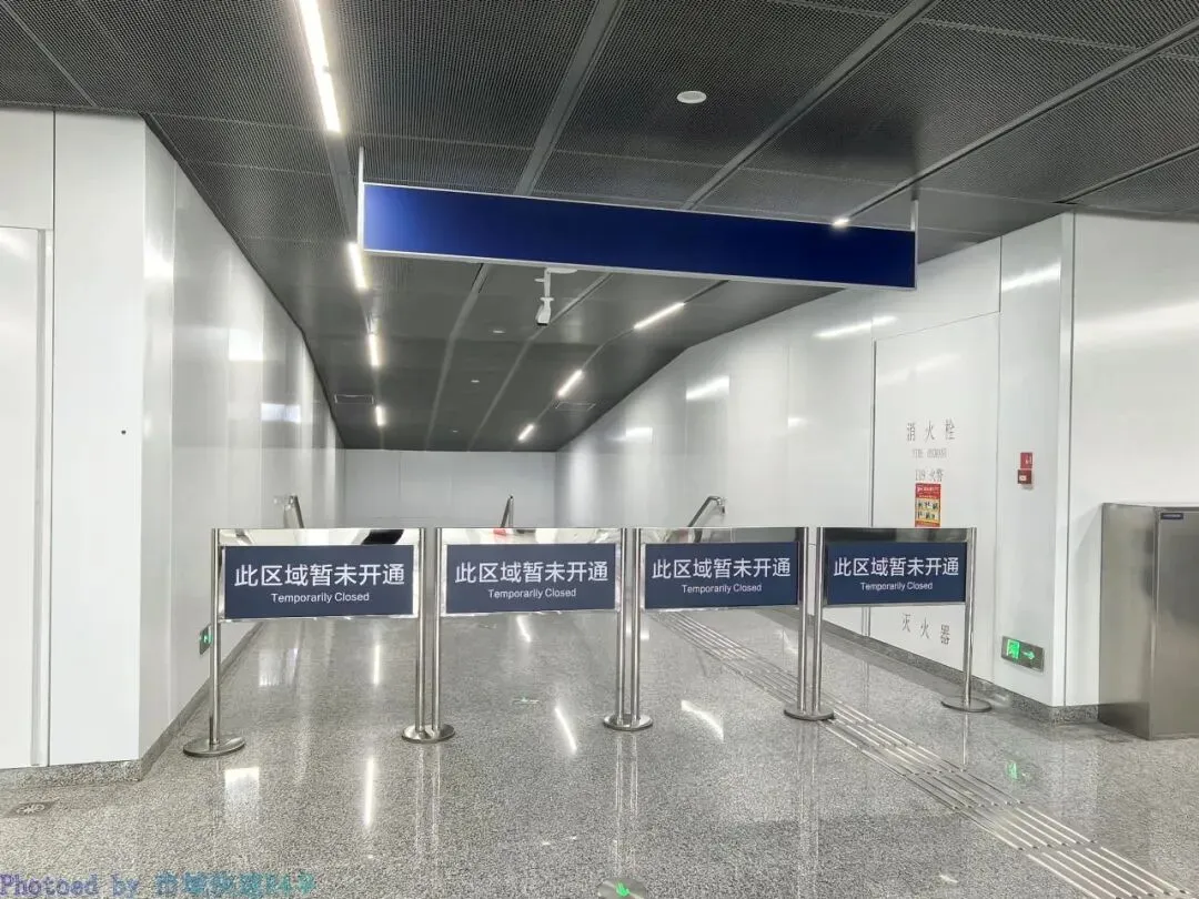 东麒路站站厅层,本站规划中将换乘12号线,预计将是站厅T字或L字换乘,站厅西侧有预留接口(向下楼梯通往10号线站台)。可惜12号线规划属于有生之年系列