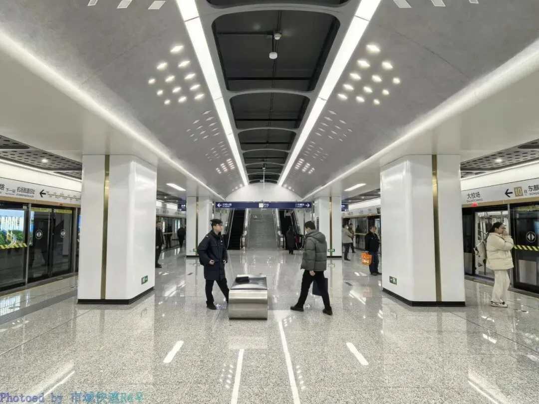大校场站,位于丁墙路国际路口东,地下三层岛式车站,该站是10号线小交路东端终点站,有一半列车在本站折返向西