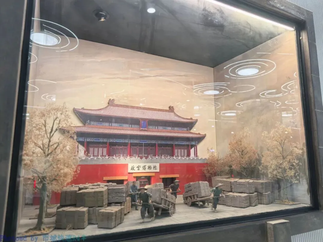 以故宫文物南迁历史为背景,突出展示文物南迁的重要时间节点、重要迁移留经地点等内容。以仿真文物转运木箱为载体,结合场景还原,多视角颂扬文物保护史上的这一重要事件