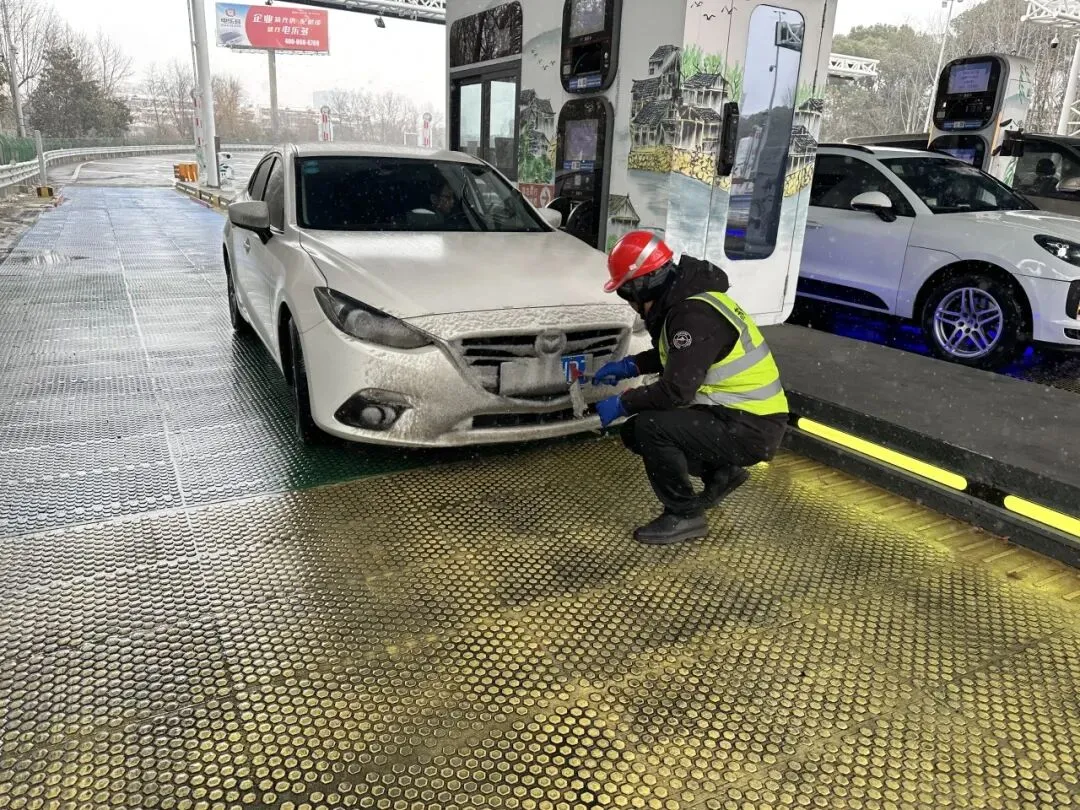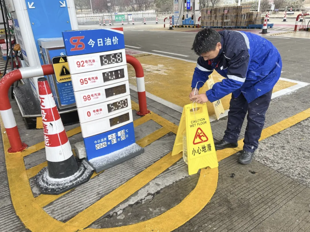 面对雨雪天气,鑫能公司强化油罐、加油机、卸油口等关键设备防雨巡检,确保低温环境下油品供应稳定;对充电桩枪头、接线端口等关键部位加装防水护套,加大设备运行状态巡检频次,全力保障充电服务“不断档”。