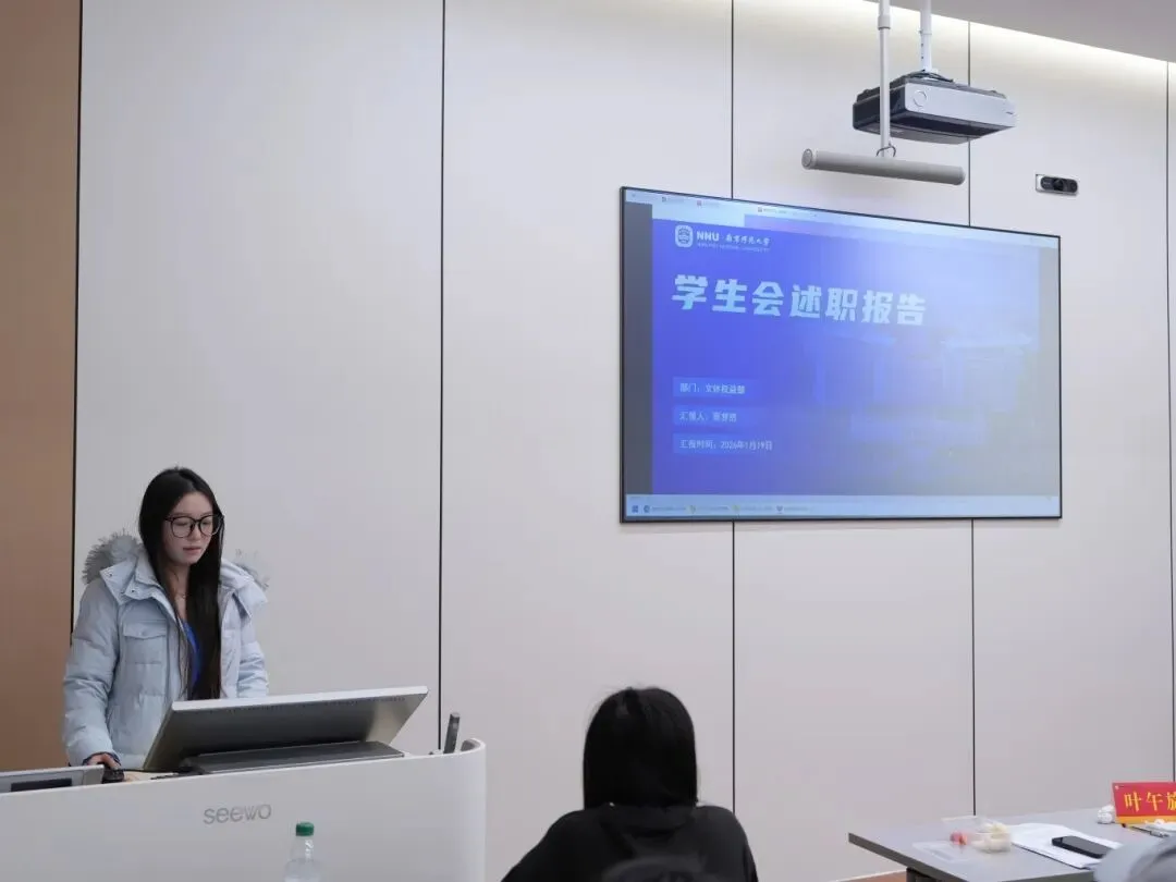 最后,主席团成员徐诗颖汇报了本学期在活动组织、材料整理及院校联动等方面的工作情况。她特别指出,“权益说”系列推文的内容需进一步加强信息核实,强调应持续深化与各合作组织的联动协作,并提醒各部门重视材料的系统化整理与归档工作,为后续工作留存依据、奠定基础。