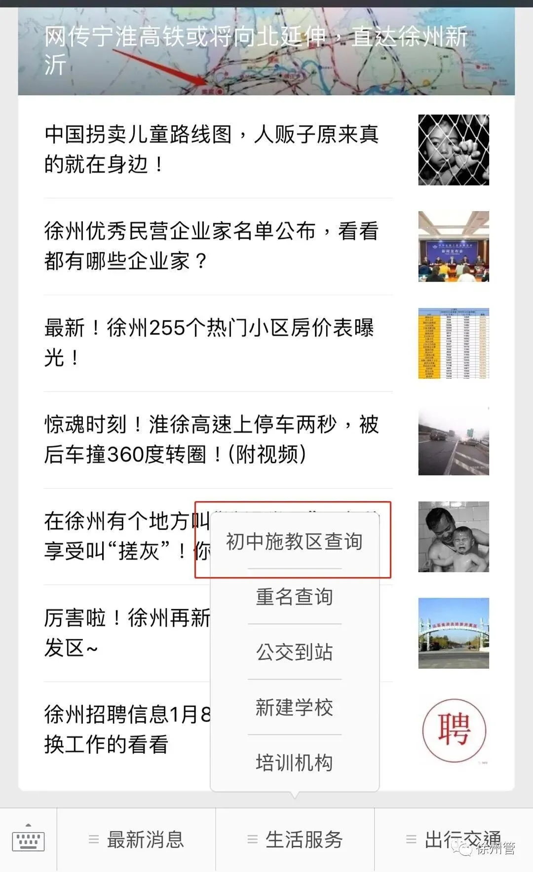 不用在等通知,徐州公办初中施教区在线查询功能已上线