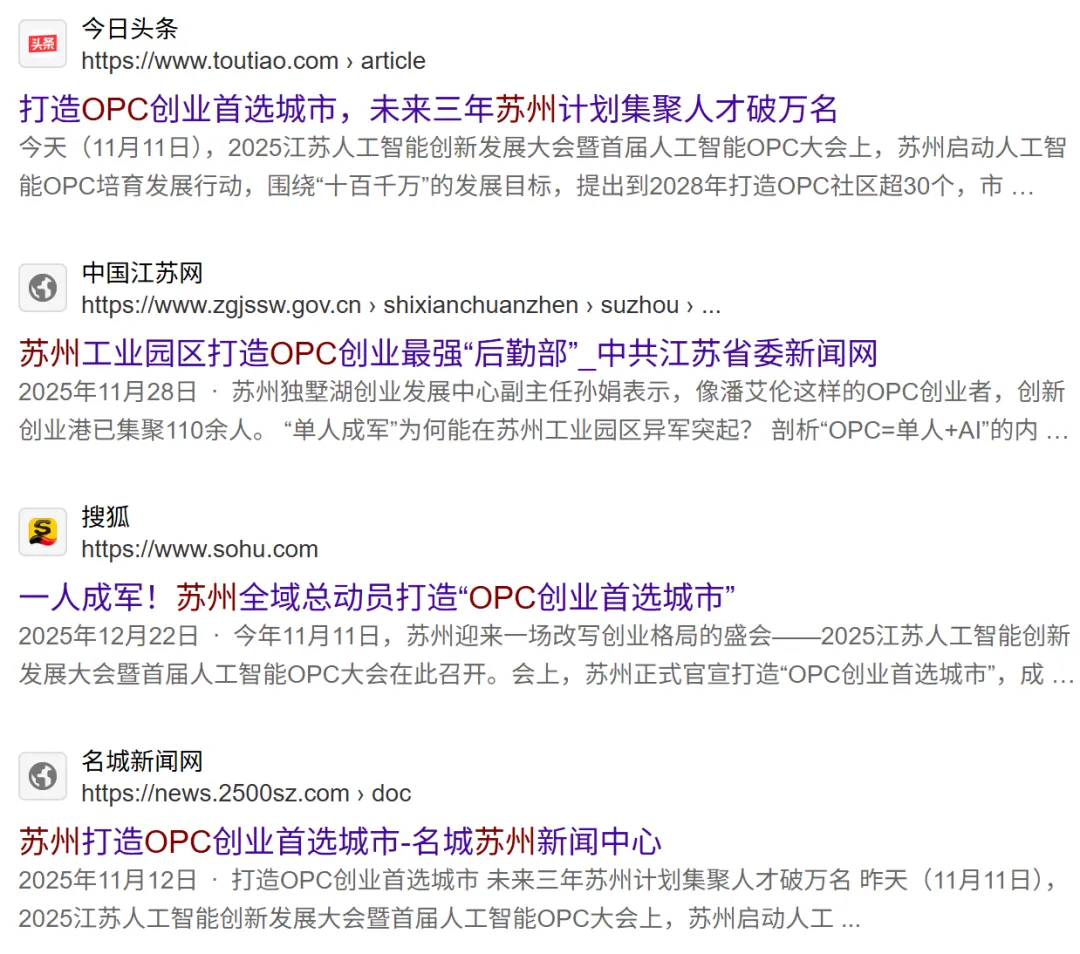 2025年末,《苏州市人工智能OPC培育发展行动计划(2025-2028)》正式发布,一场支持“单人成军”的创业浪潮在全市展开。