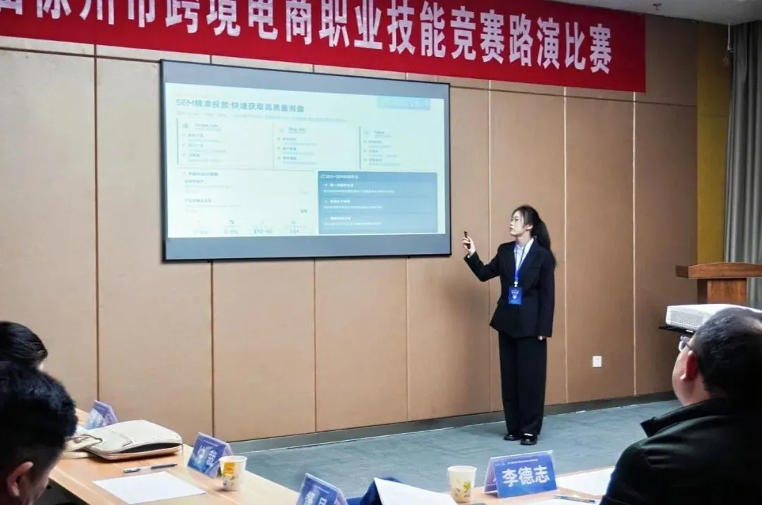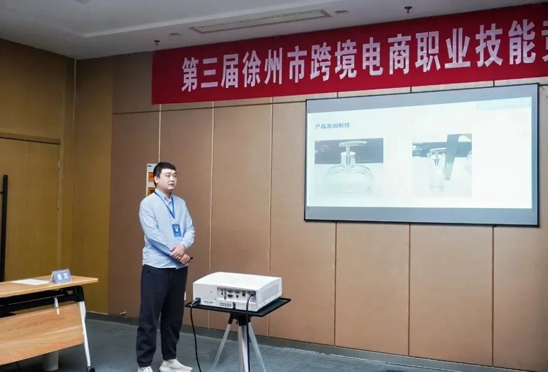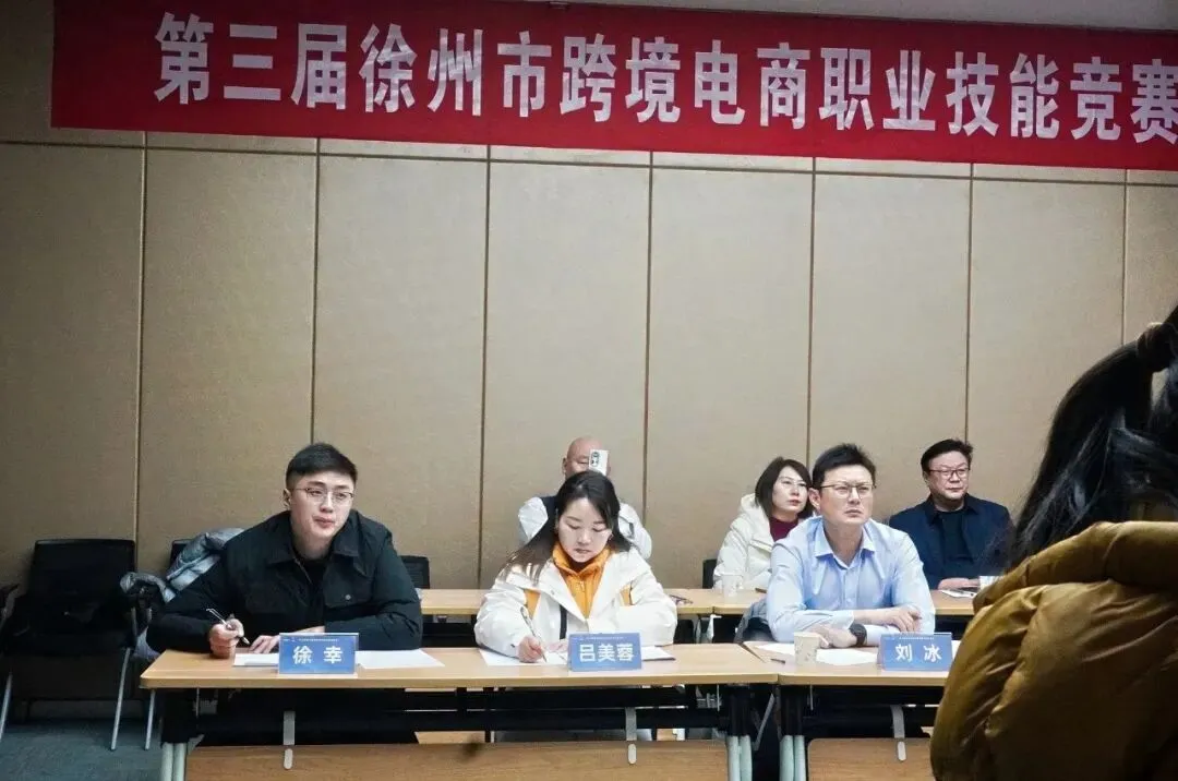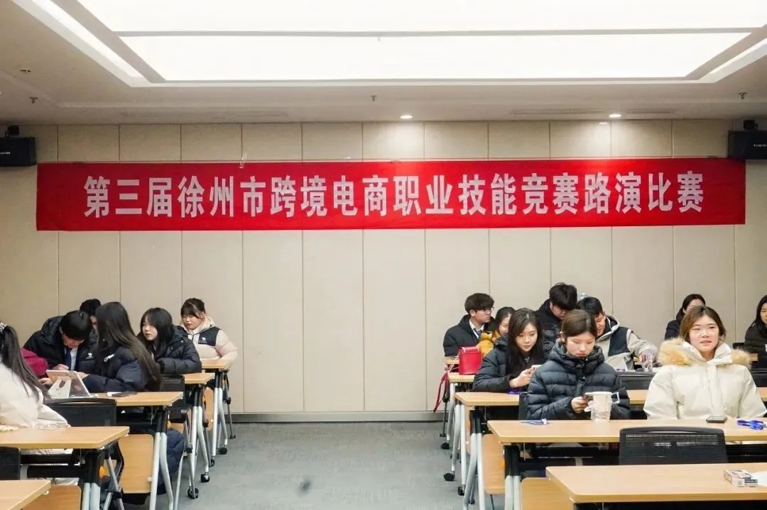 2026年1月17日,由徐州市商务局、徐州市人力资源和社会保障局主办,徐州市电子商务协会、徐州市跨境电子商务协会协办,徐州行知网络科技有限公司承办,中国建设银行徐州分行、徐州简美玻璃制品有限公司支持的第三届徐州市跨境电商职业技能竞赛,在徐州经开区淮海(国际)数字贸易产业园举办了路演比赛,路演比赛由学生组、职工组和教工组三个组别组成,36位在机考比赛成绩中脱颖而出的选手参加。在学生组的比赛中,学子们以玻璃产品为素材,运用所学的跨境电商理论,结合跨境市场需求和创新思维,阐述了玻璃企业独立站的跨境电商运营策略,向评委们展示了对本土产品销往海外的产品分析和市场洞察。