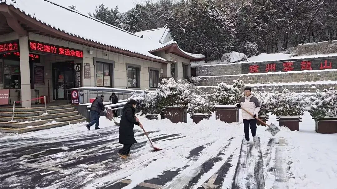 徐州文旅集团青年突击队迅速响应,全员下沉一线,开展除雪保畅专项行动。针对景区易滑路段及重要节点,采取“机械+人工”相结合的方式,重点实施人工锄雪作业,确保不留死角。以实际行动践行了“人民至上、服务为本”的社会担当,为景区平稳运行提供了坚实保障。