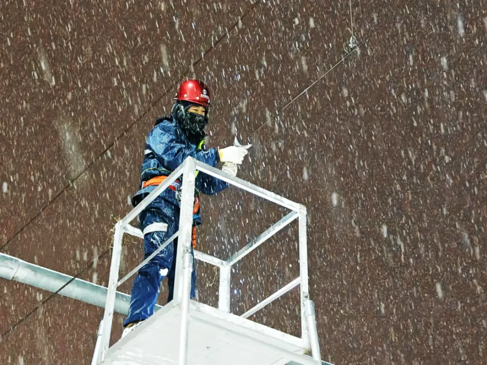 国网徐州市铜山区供电公司团委组织青年突击队,全力做好电网设备、线路巡检工作,积极应对寒潮雨雪天气,保障雨雪冰冻期间电网安全稳定运行。突击队员现场分析研判,及时采取处置措施,做到全面巡查无死角,隐患消除不过夜,全力保障雨雪冰冻天气下电力安全稳定供应。