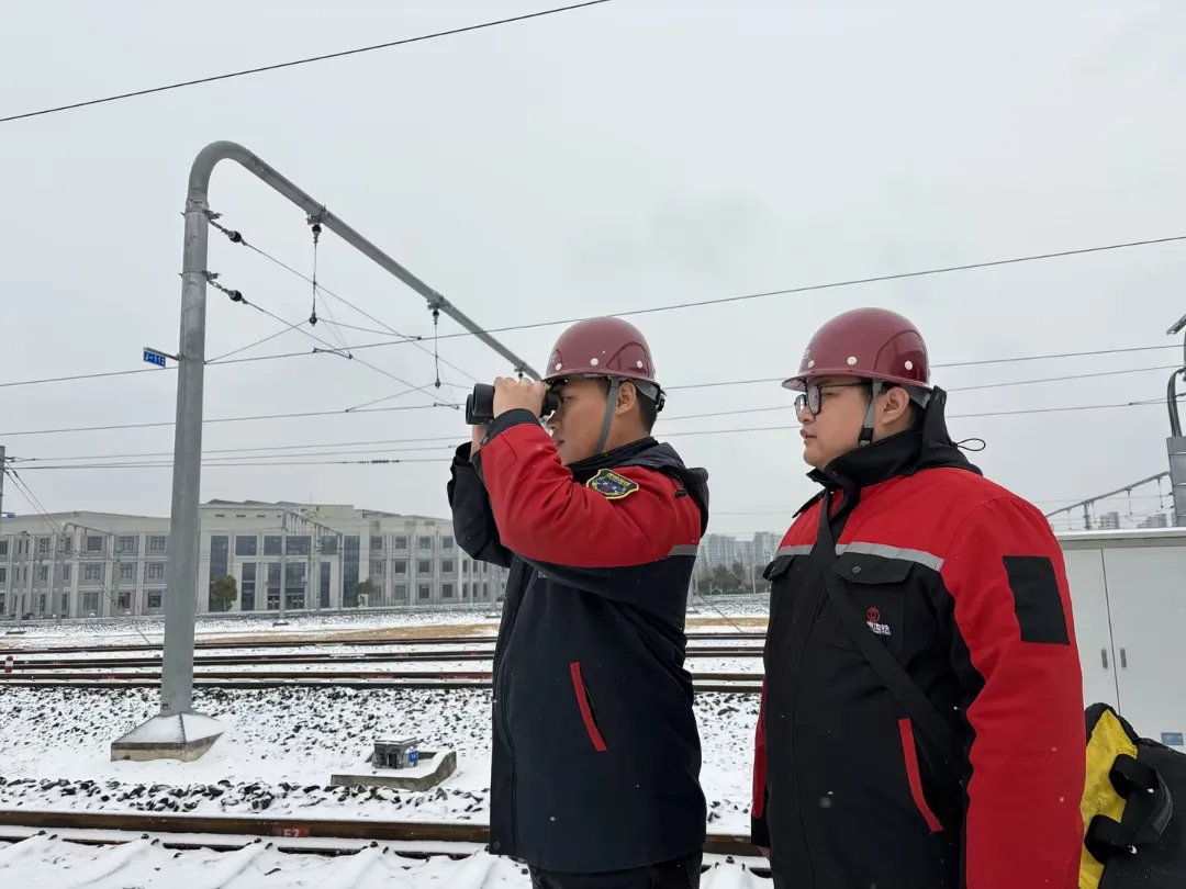 徐州地铁青年突击队闻雪而动,同步启动客运服务综合保障,全力确保轨道交通线网平稳运行。突击队成员顶风冒雪,重点对接触网、尖轨道岔等易积雪积冰区域开展专项作业,同时,线网各车站严格执行“保通保畅、持续清防”要求,在出入口、楼梯、通道等重点区域安排人员值守巡查、循环清扫,确保“雪落人到、雪停路净”。
