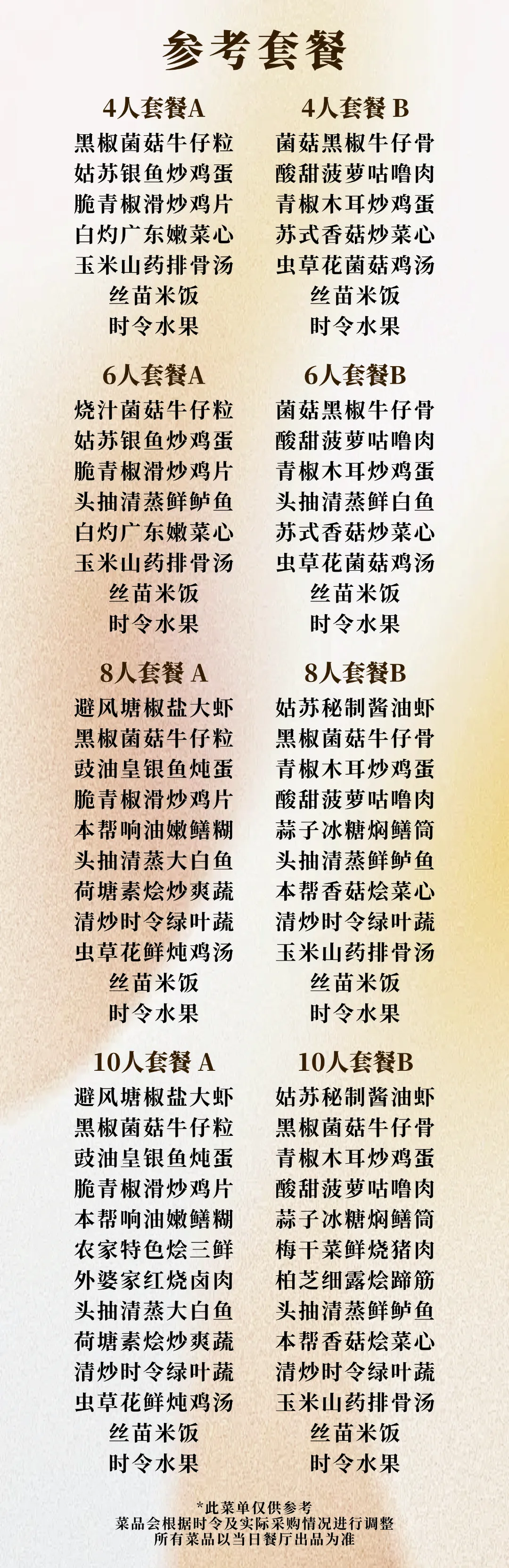 (准时上菜,推迟用餐导致菜凉或无法用餐,责任自负)