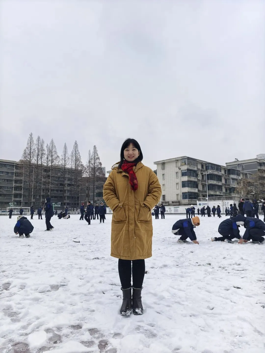 操场上,浩子带领学生在打雪仗,他们班的学生满脸堆笑。青春,和雪地真的很配。雪是他们的背景,他们彩化了大地。