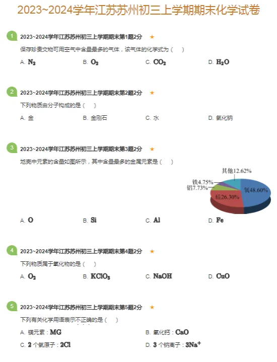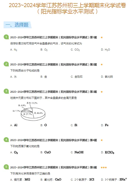 2017-2024学年苏州各区初三上学期期末化学真题及答案解析