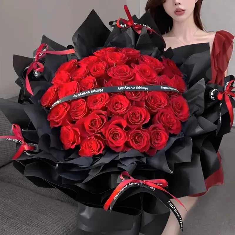 → 黑色包装纸+暗红芍药,搭配干枯玫瑰:“我曾在人群中寻找你,直到你成为我的唯一。”