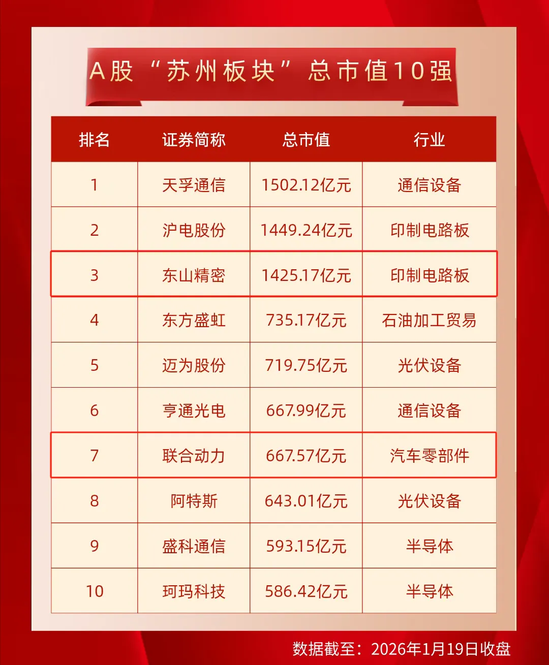 在此次 3 万亿市值的 “苏州军团” 中,吴中上市公司协会会员企业——东山精密与联合动力凭借深耕产业的坚守与创新突破的魄力,成为资本市场吴中板块的中坚力量。