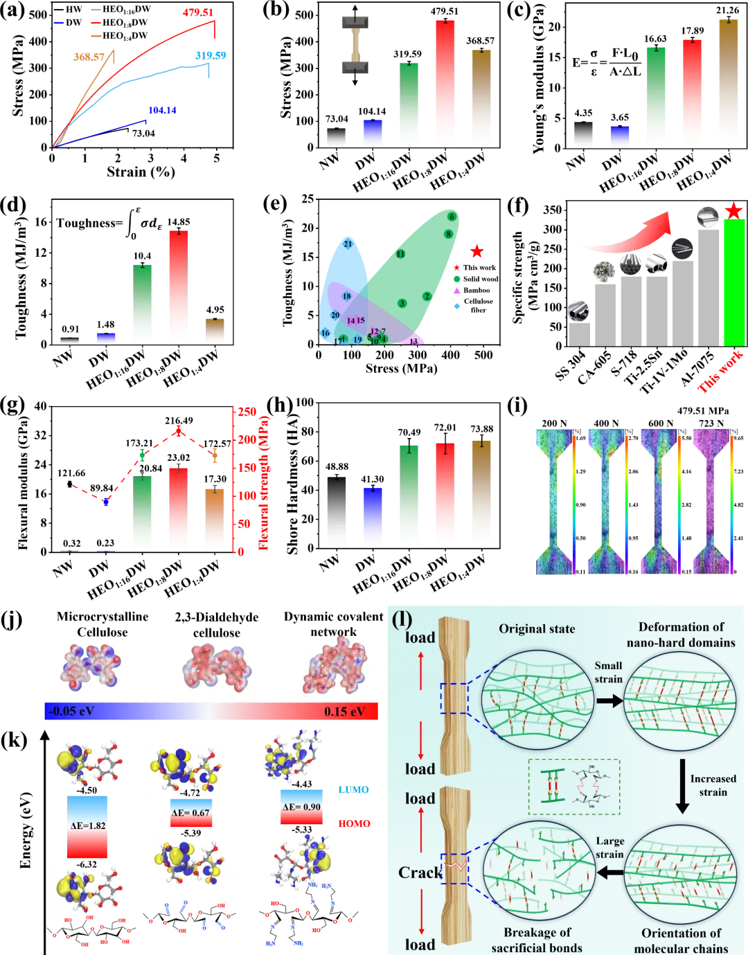 性能提升带来多功能应用潜力图5展示了该仿生木材在高强度和高韧性同时的多功能应用潜力。