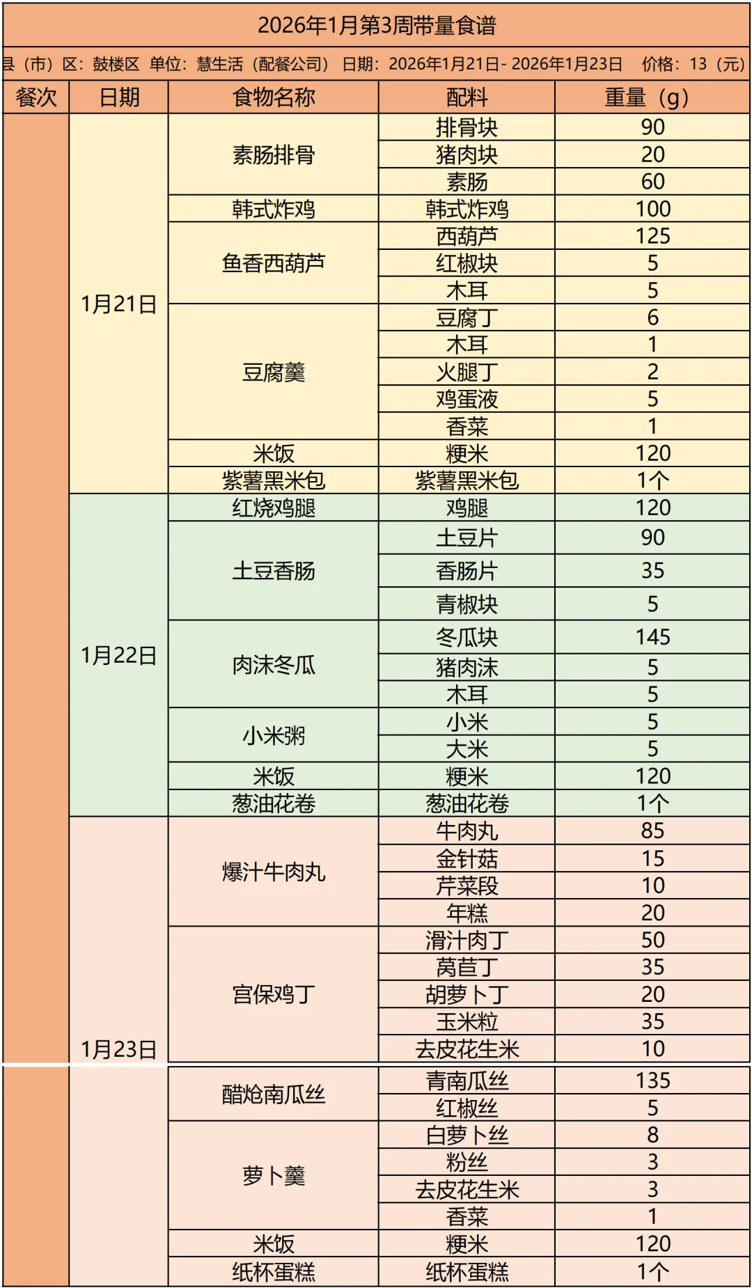 徐州市鼓楼区特殊教育中心一周健康食谱(2025年1月21日-1月23日