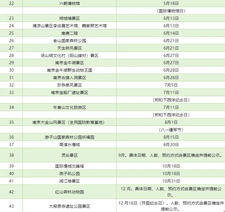 小编提醒:每年南京都会有景区免费开放日,2026年南京景区免费开放日一览:
