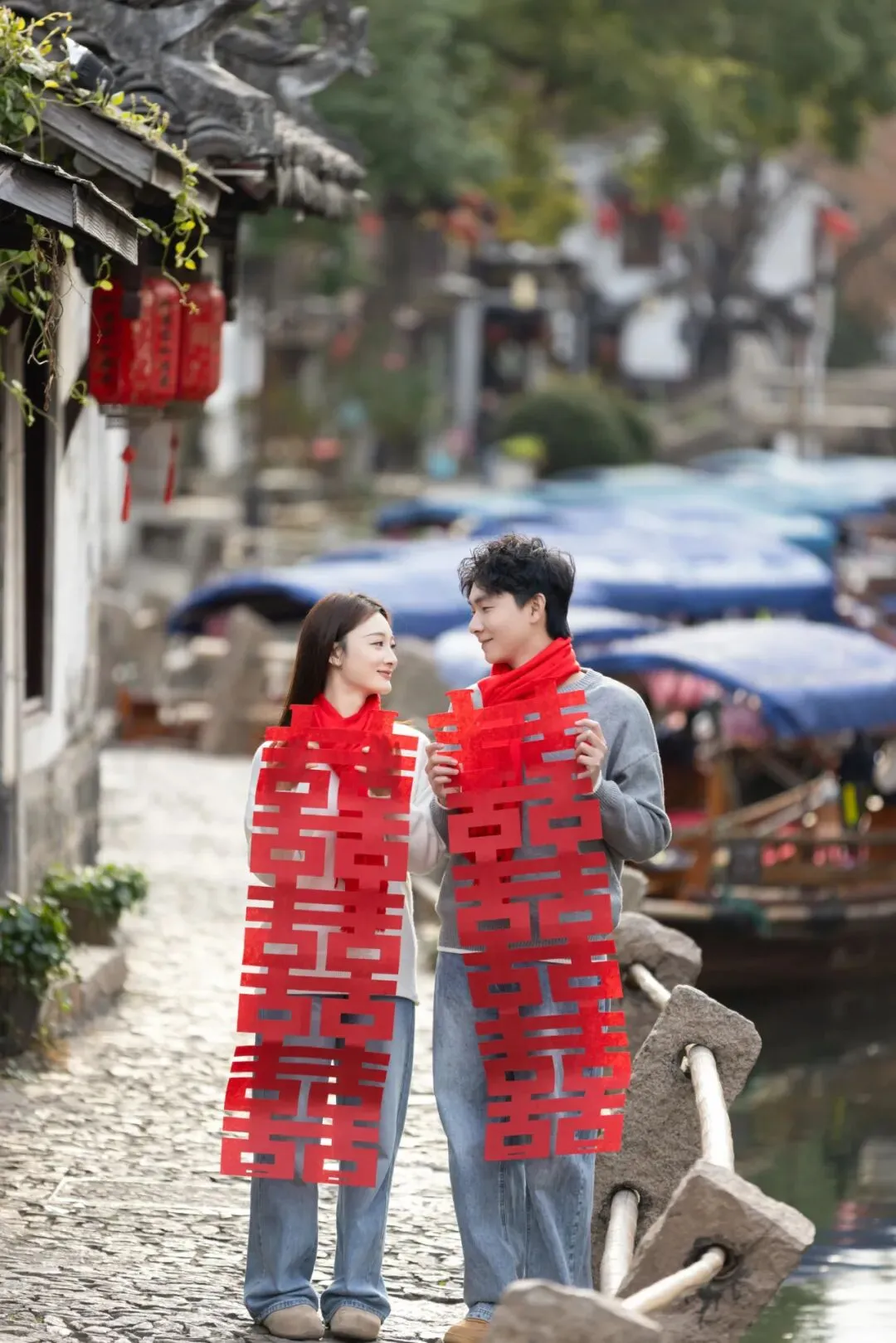 在古城,十全街结婚登记点布置了各色打卡装置,配上“十全十美”的美好寓意,浪漫氛围拉满;