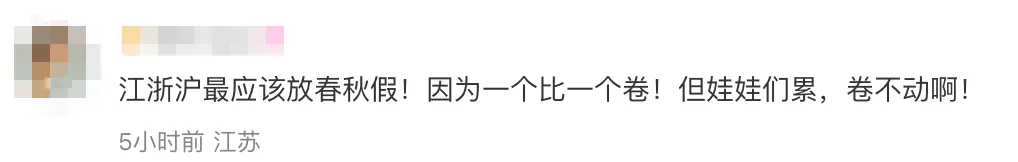 去年,“春秋假”已经是个热点话题,南京家长们一直有着不同的声音。看来,想要落实春秋假,首先就要先解决以上关系到孩子和家长的实际问题,比如,对于双职工家庭,放假孩子放哪儿?怎么安排?不然家长还是会反对放假。关于中小学春秋假,你有什么看法?