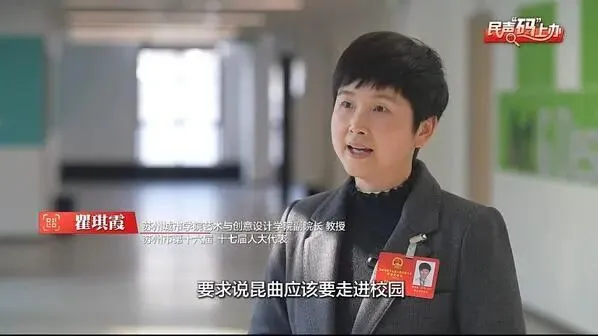 近日,我校艺术与创意设计学院副院长,苏州市第十六届、第十七届人大代表瞿琪霞教授接受苏州电视台专题采访。相关采访视频随后被央视新闻采用播出,引发社会广泛关注。在节目中,瞿琪霞立足高校教育工作者与人大代表的双重身份,分享履职心得,全面展现了我校在昆曲等非物质文化遗产传承与创新领域的积极探索与丰硕成果。