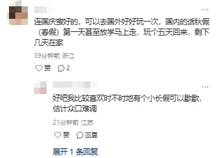 江苏自2025年起鼓励有条件的地方试行中小学春假和秋假。具体为将“五一”前3个工作日、“国庆”前3个工作日分别设置为中小学春假和秋假。2025年5月,江苏省政府办公厅印发的《江苏省实施提振消费专项行动若干措施》对此进行了明确。此次南京市政府工作报告中的上述工作部署,意味着今年起南京中小学有望拥有“春秋假”。