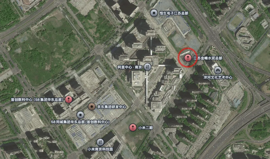 江苏金峰集团总部应该指的是河西南部的江苏金峰水泥总部项目,位于河西南部永初路总部聚集区附近,就在南京金陵天地隔壁,但一直比较低调。