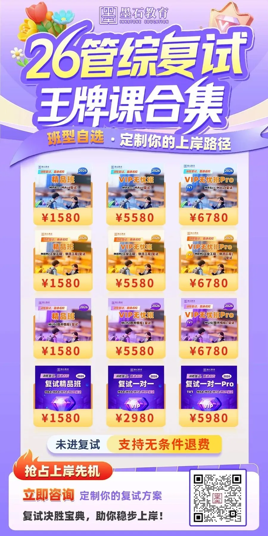 ①综合成绩构成与确定:综合成绩=初试成绩(50%)+复试成绩(50%)
