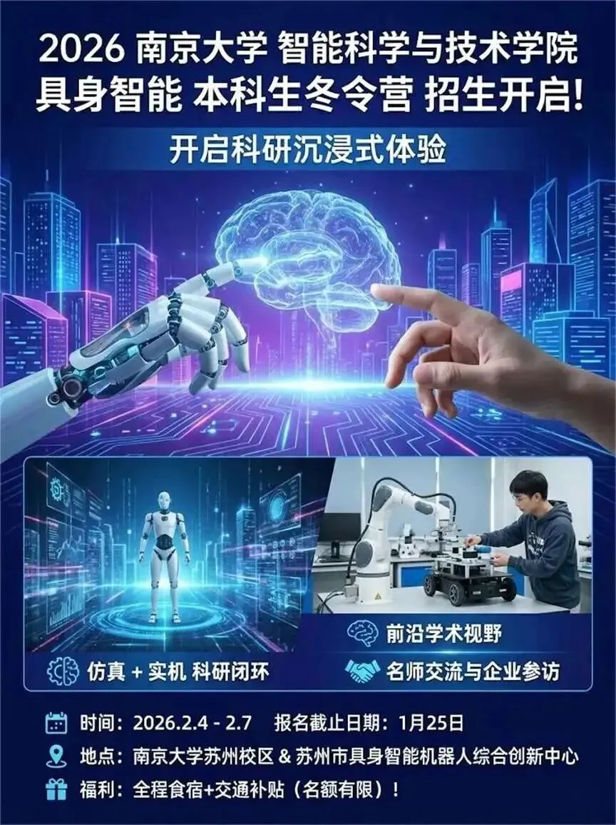 南京大学智能科学与技术学院具身智能申请截止时间:2026年1月25日