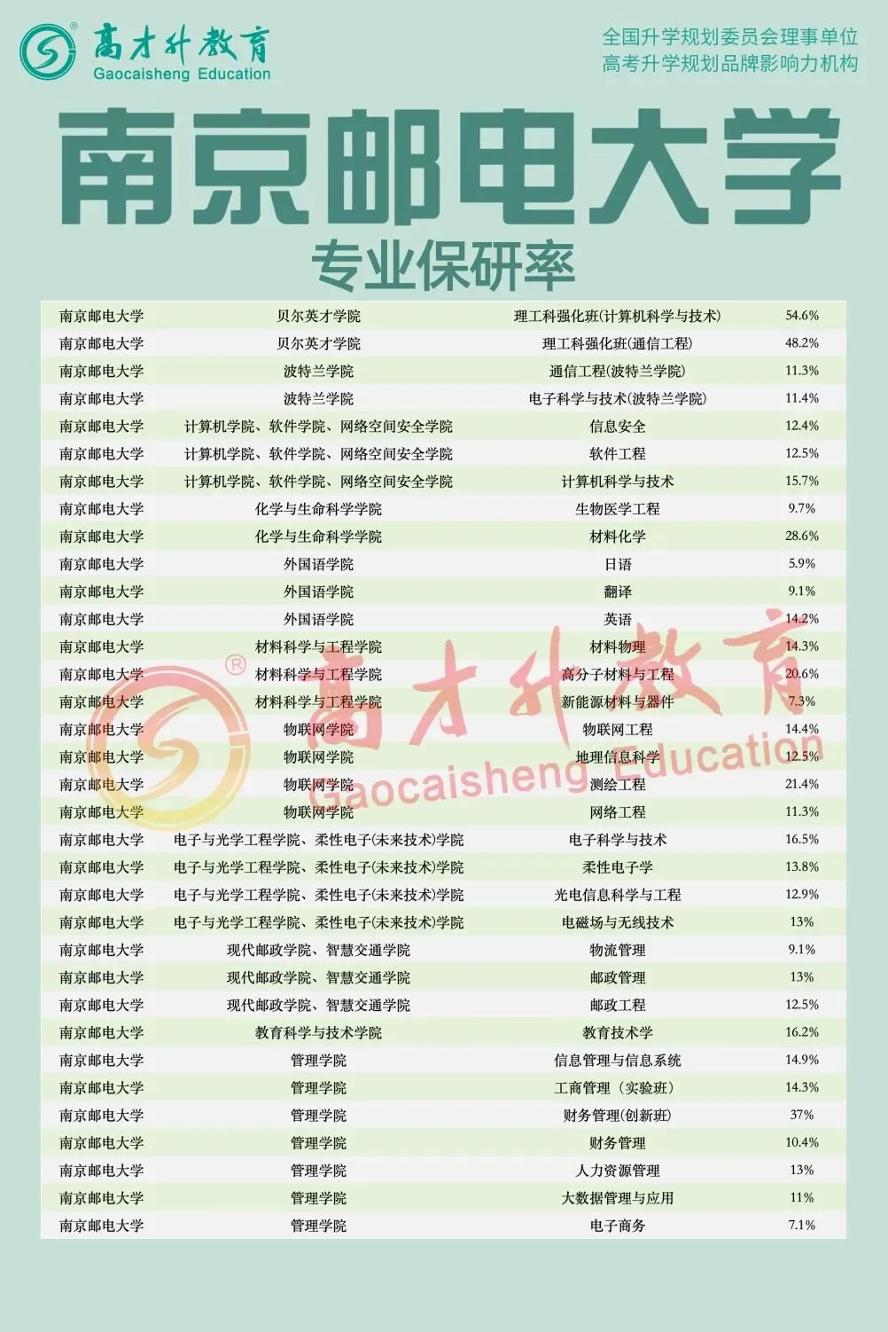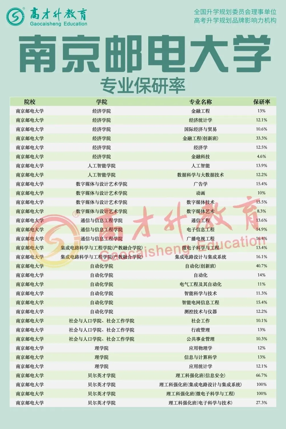 南京邮电大学作为一所以信息科技为特色的高校,其各专业的保研率数据反映了不同学院及专业在学术培养、科研实力以及学生发展方向上的差异。以下基于提供的保研率数据,对各学院专业进行简要分析,为有意向深造的同学提供参考。