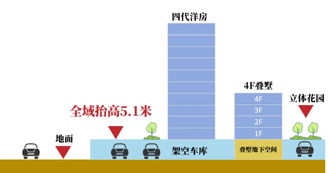 答案,是将整个社区的地面层整体抬升约5.1米。