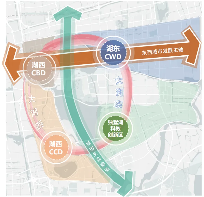 如今,在湖东发展空间趋于饱和、城市发展转向内涵提升的背景下,园区战略重心回归湖西,就是必然选择。