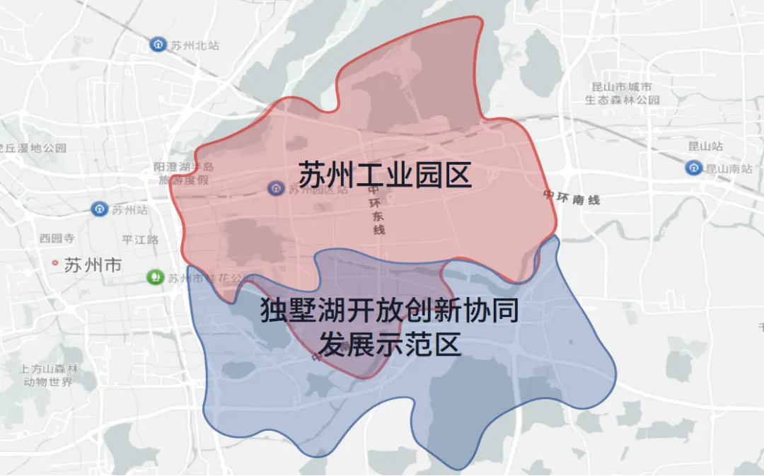 ◎独墅湖开放创新协同发展示范区核心区与苏州工业园区的位置关系图