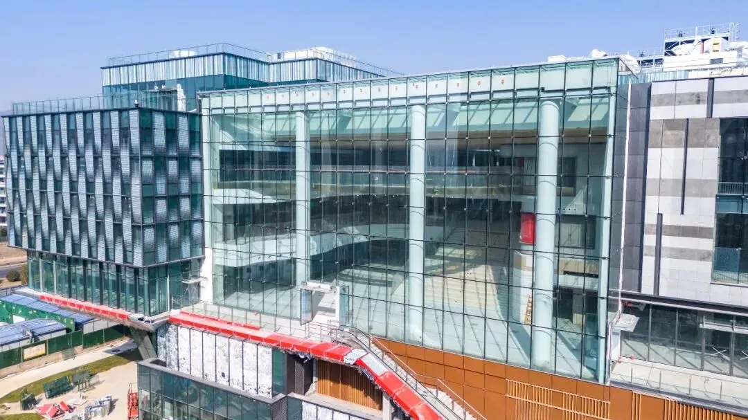 从现场看,高约20米、宽近35米的高透拉索幕墙已经露出,未来这里将引入充沛自然光,模糊室内外界限,通透感十足。