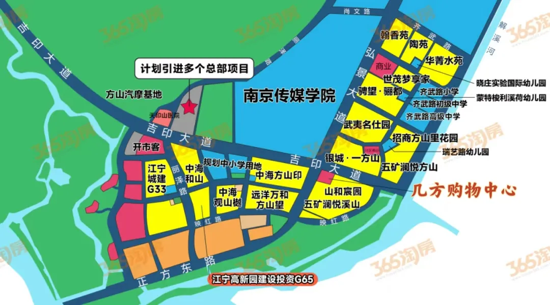 方山南还有2大纯新盘——江宁高新区建设投资G65和江宁城建G33待上市,这两个项目容积率仅1.05,低密加持,未来会有越来越多的高净值人群入住方山南。