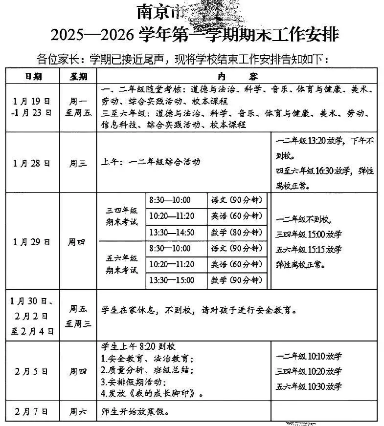 南京各区期末安排已经出炉