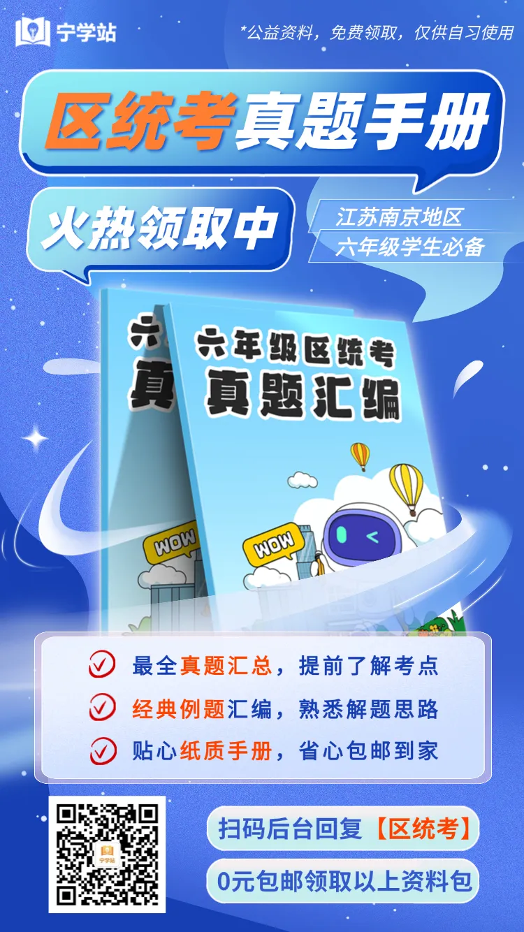 六年级区统考冲刺,后台回复【区统考】领取【区统考真题汇编手册】+【押题模拟卷】,含答案(公益资料,免费领取,仅供自习使用)