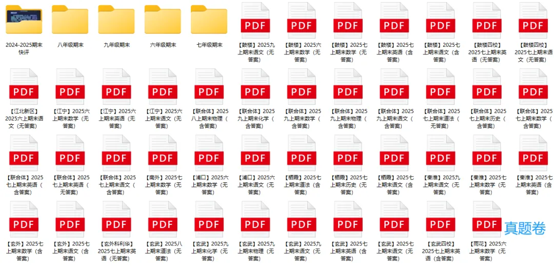 后台回复【期末上】下载南京各区期末真题+押题卷,7-9年级,部分含答(公益资料,免费领取,仅供自习使用)