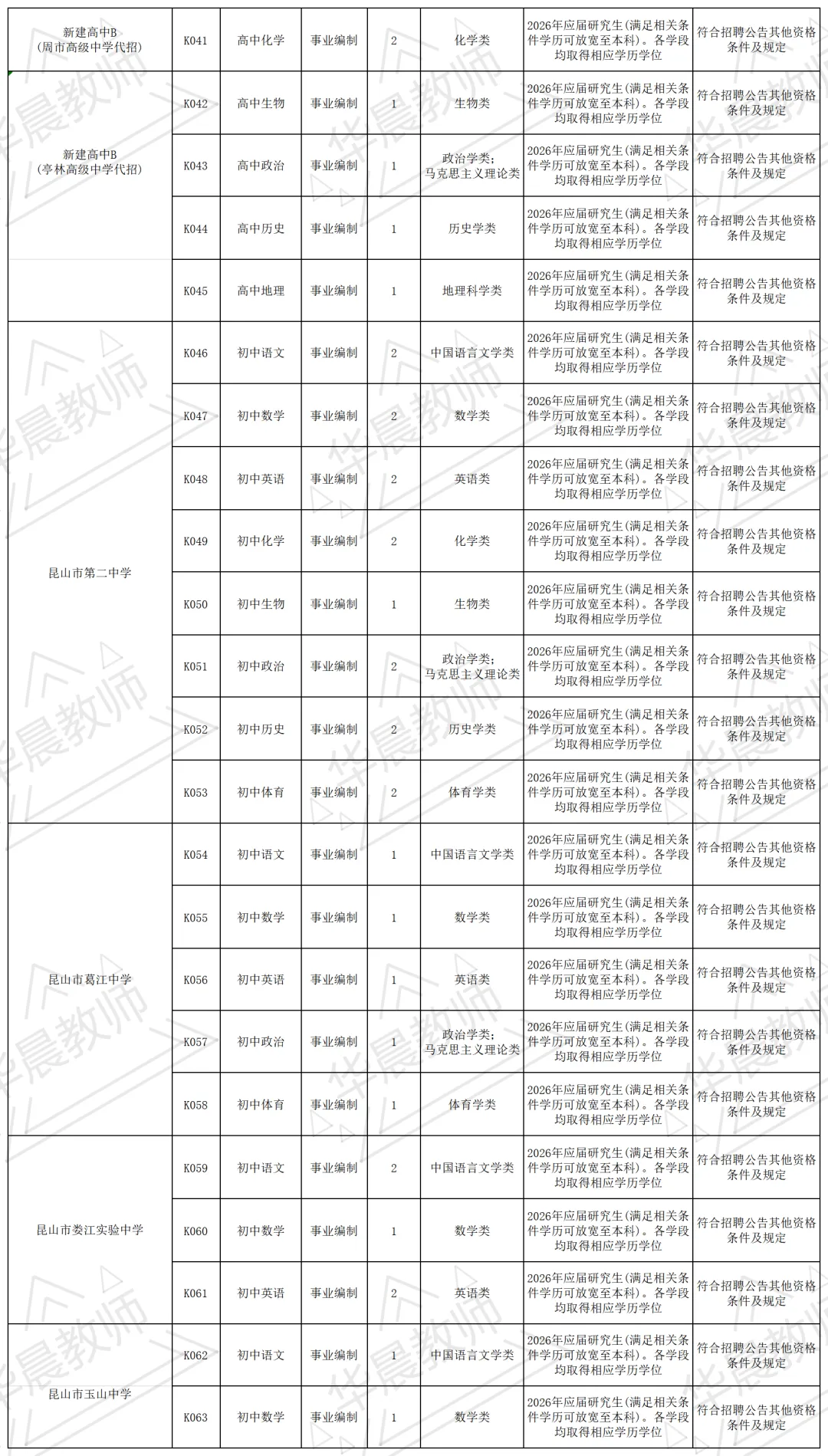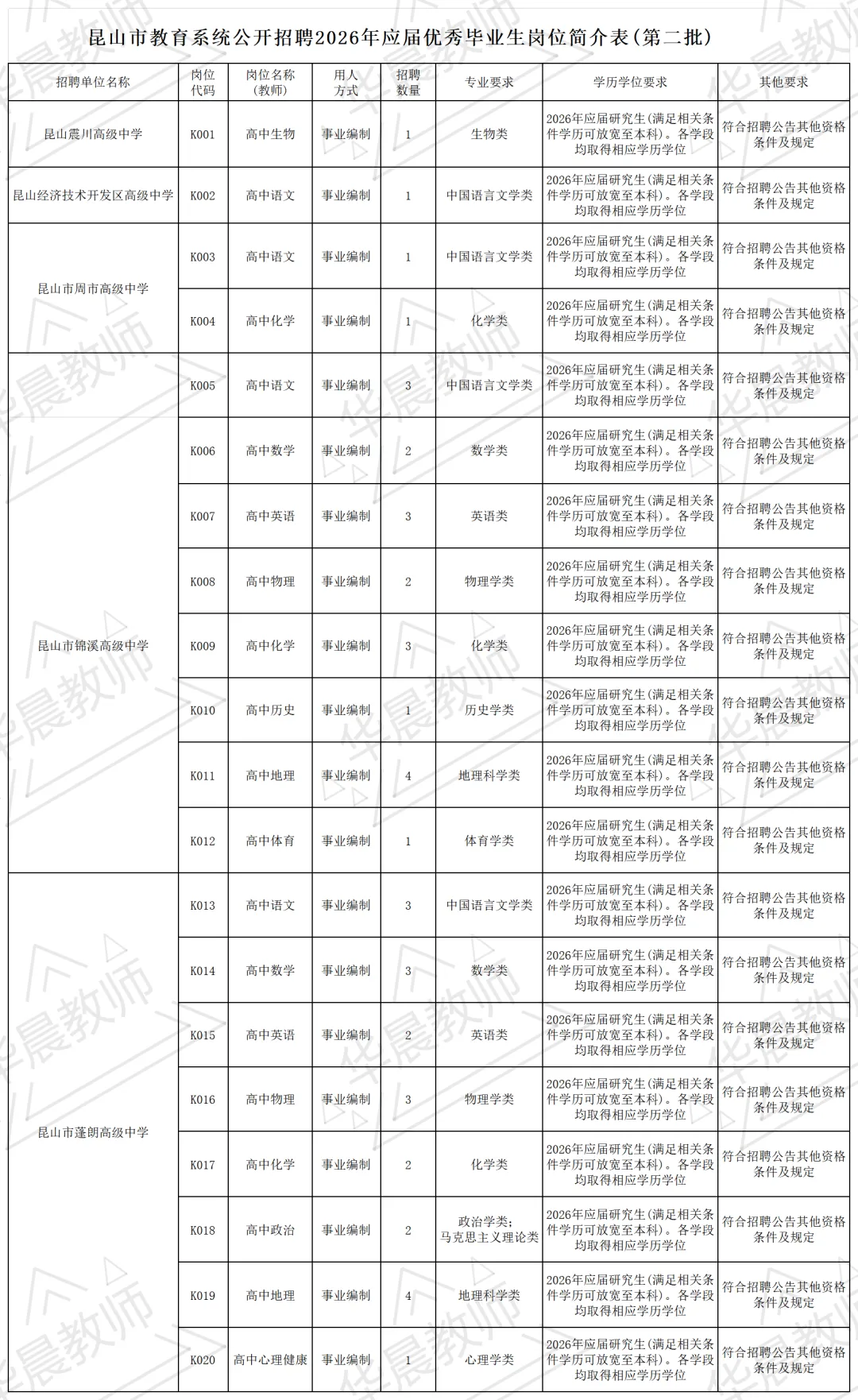 详见附件《昆山市教育系统公开招聘2026年应届优秀毕业生岗位简介表(第二批)》。