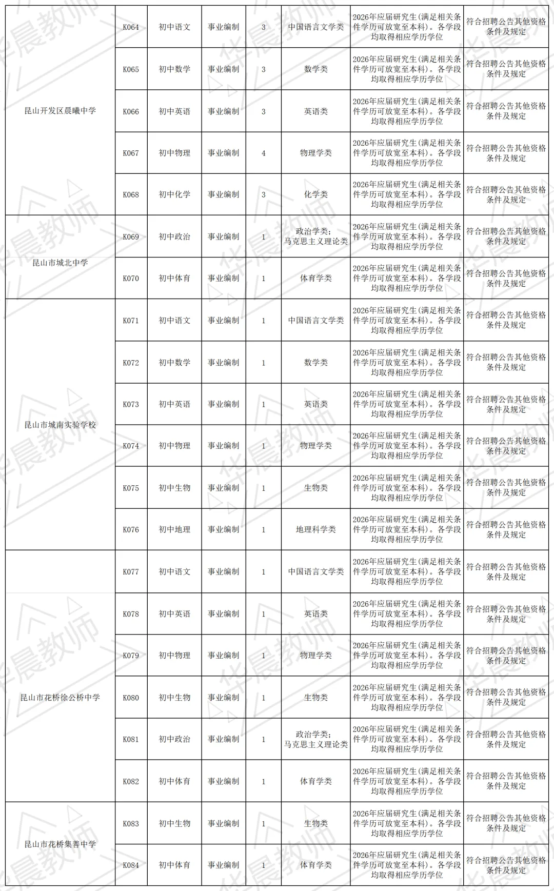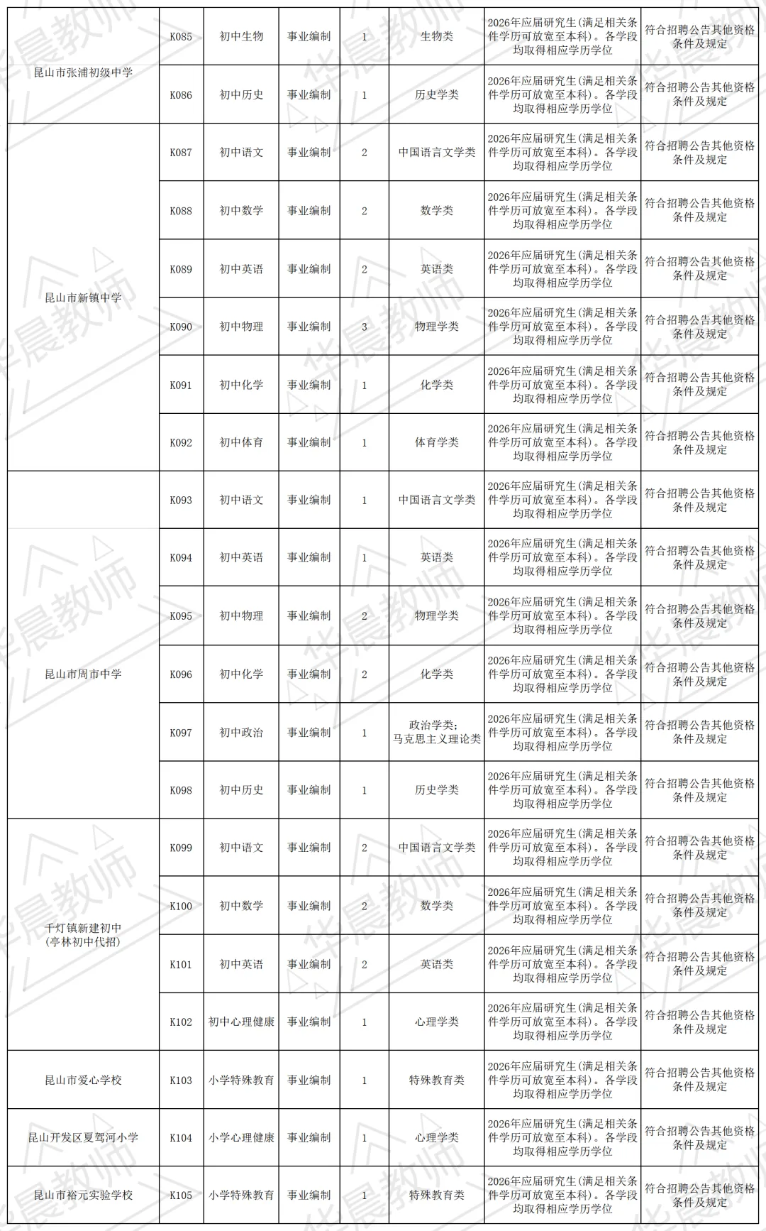 后续各批次招聘信息请继续关注“昆山教育发布”微信公众号、昆山市人民政府网。