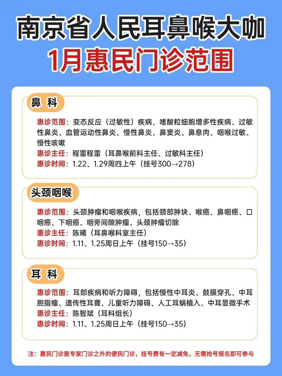 注:惠民门诊是专家门诊之外的便民门诊,挂号费会有一定减免,无需抢号报名即可参与
