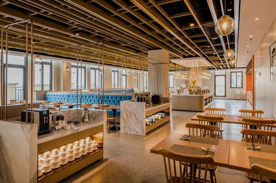6. 苏韵现代主义设计:酒店以苏州园林的婉约美学为灵感,融合现代商务需求,通过艺术陈设、在地美食等活动展现苏州当代文化,打造兼具功能性与艺术感的旅居空间