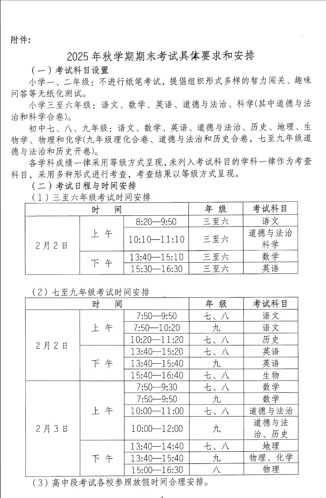 2月2日-3日:七-九年级语数英历史地理生物物化道法书面考试