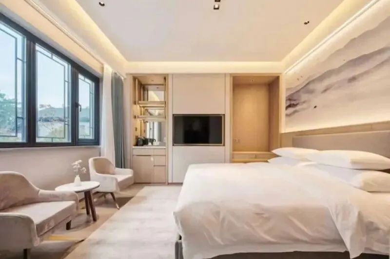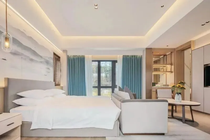客房延续外观简约大气的中式美学,面积44-96㎡不等,内饰精致,空间宽敞,轻松度假与品质生活,两者兼得。