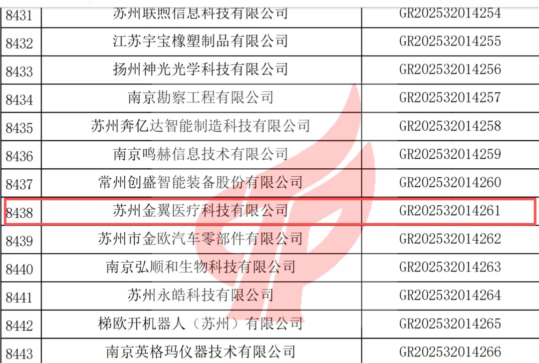 喜讯!美凤力集团-苏州金翼医疗科技入选2025年江苏省高新技术企业名单