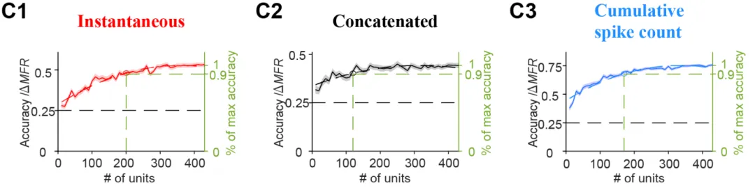 其中,汇总分析显示,解码性能在约150个神经元时达到饱和。