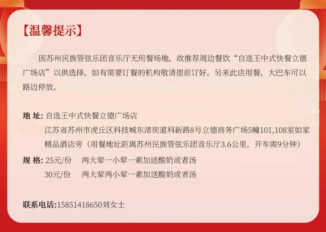 2、因剧场不可携带食品和饮料进入会场,如有用餐需求可提前用完餐再至会场。已经进入化妆间的小演员可在化妆间旁指定地点食用汉堡、面包等快捷食品。