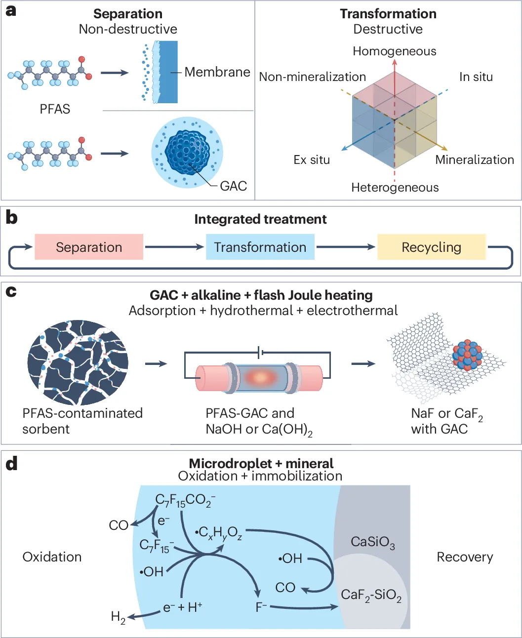 - 新兴的混合处理技术(如活性炭吸附结合闪速焦耳加热)被开发出来,可同时实现PFAS矿化与高附加值产物的生成。