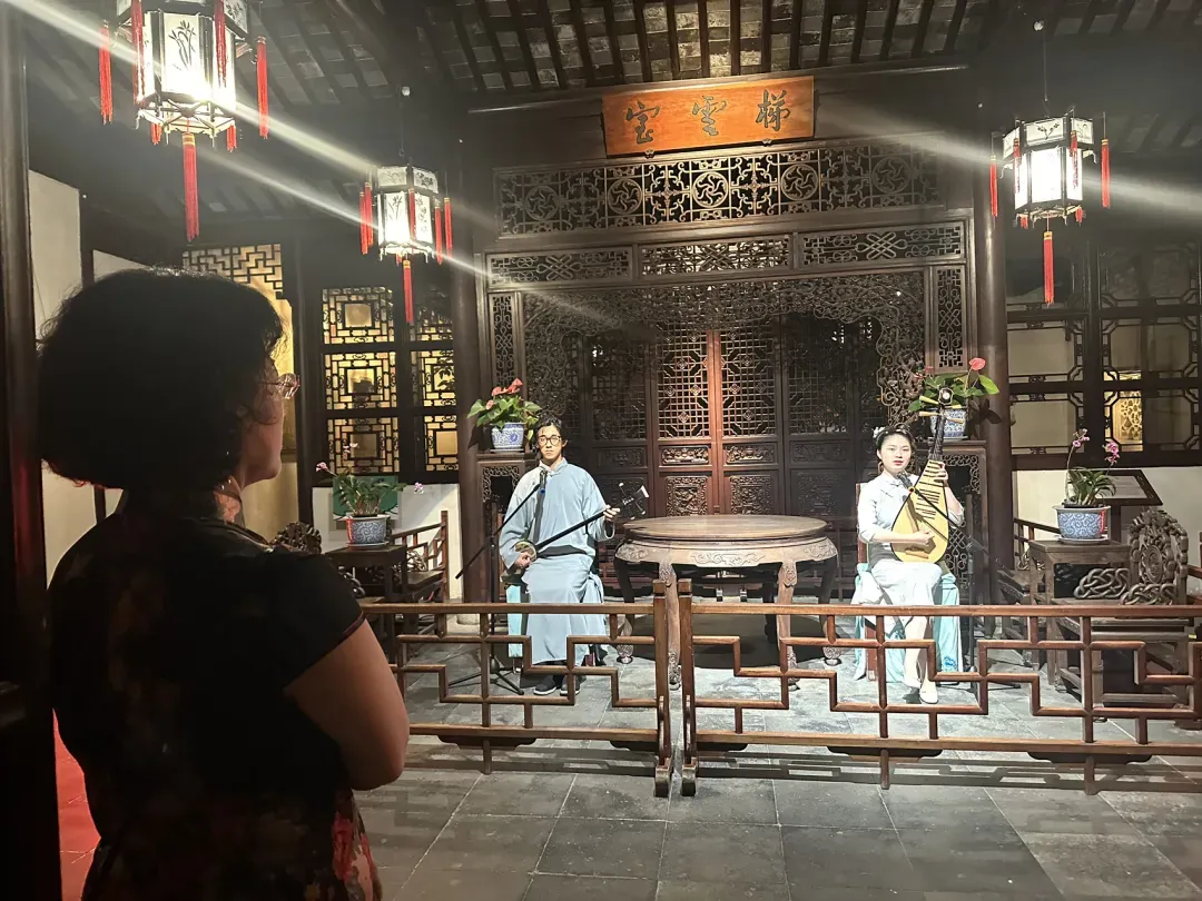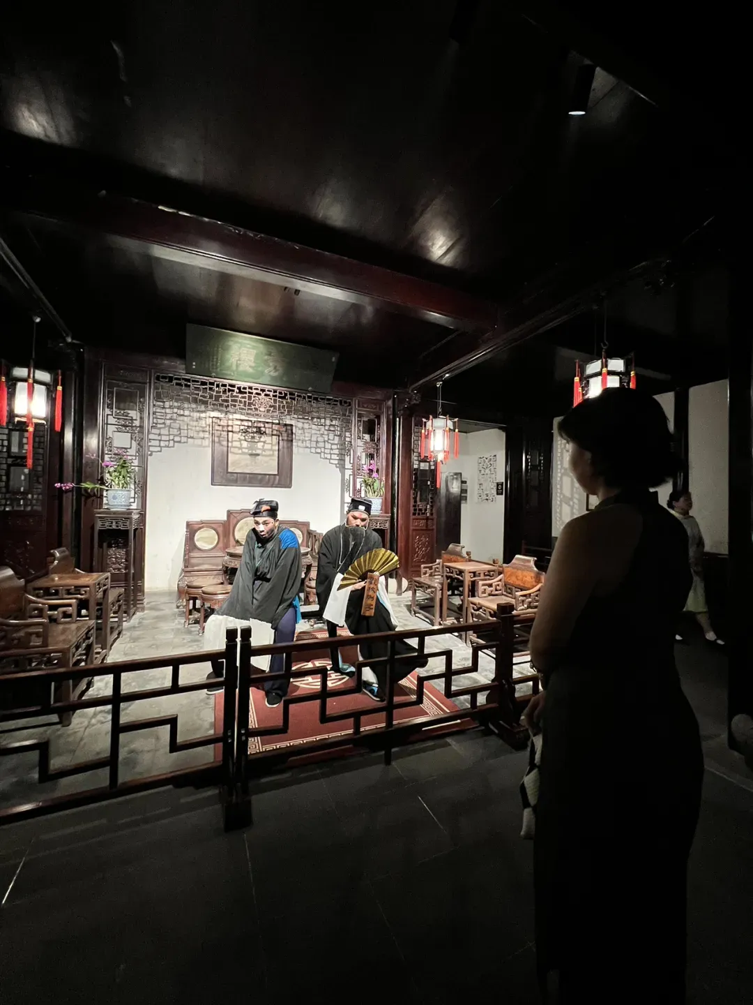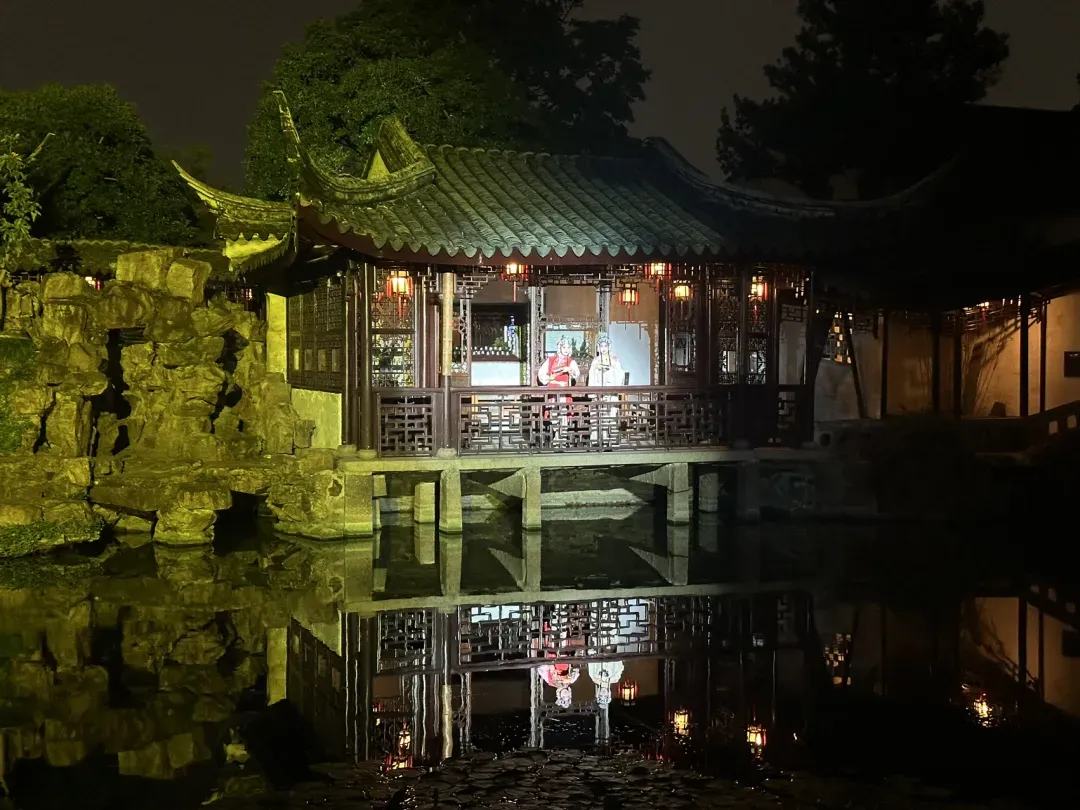 整个园子零星数十人,像是自己的后花园,没有了白日里人乌央乌央的燥乱,可以静心赏景。每个厅堂里都有地方剧种或特色演出,人少便都像是专场,这便是夜场的妙处吧。