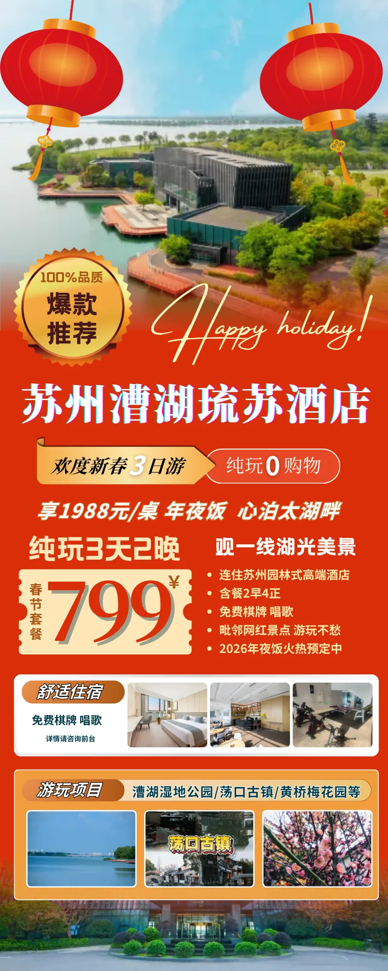 荡口古镇保留有北仓河老街、华氏始祖的老义庄、楠木厅、华蘅芳故居、三公祠、思泉亭、步弓刻石、植福祠戏楼等古建筑,是集旅游、休闲、观光、度假为一体的江南水乡古镇,2014年,荡口古镇被公布为国家级AAAA景区。