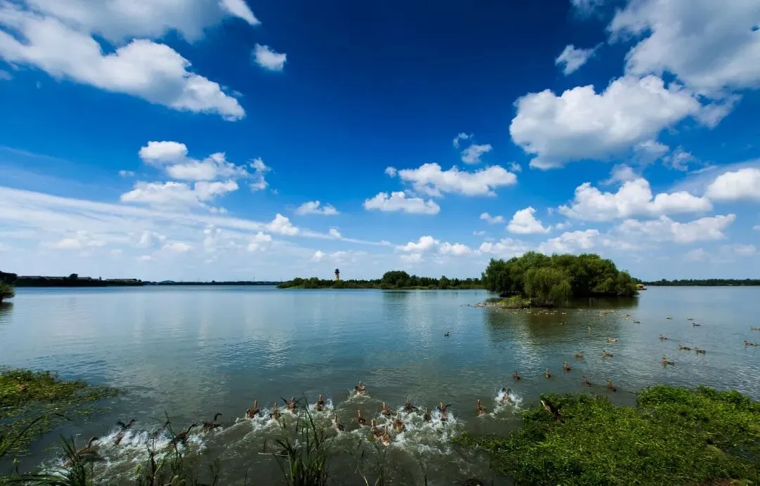 公园拥有广阔的湿地景观,植被丰富,是多种鸟类的栖息地,被誉为“鸟类的天堂”。漕湖长5.9公里,湖盆平坦,湖水清澈,风光秀丽,蕴藏着蓬勃的生机和活力。