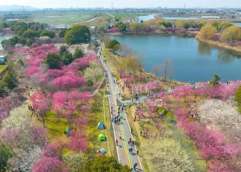 黄桥梅花园是苏州市相城区重点建设的生态主题公园,于2021年12月建成开放,占地面积超3000亩。园内种植红梅、绿梅、腊梅等20余个品种共2000余株梅花,并结合湿地景观打造池塘、溪流、步道等自然元素,形成“梅引逐香蹊”的核心主题。