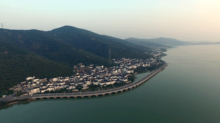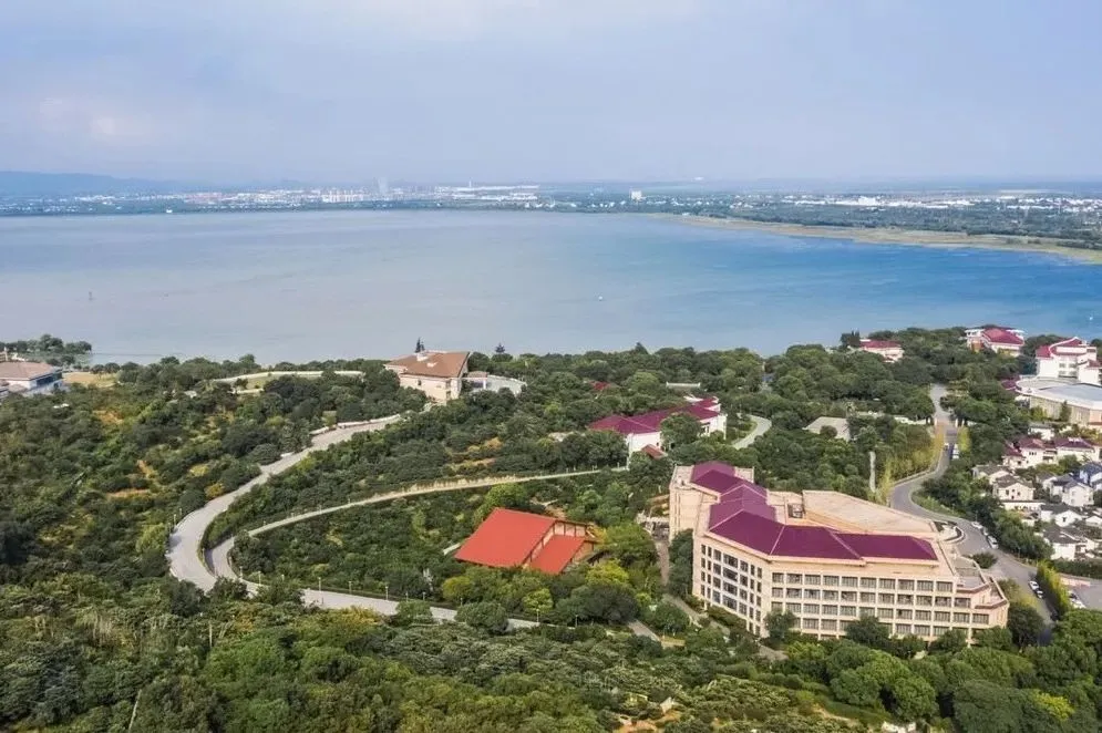 太湖中的一座延伸半岛,270°水环绕,